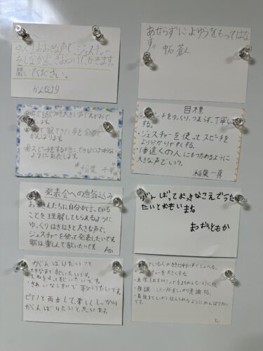 私から生徒の皆さんには、発表会前に書いてもらった目標シートの裏に、1人1人に心を込めてメッセージを書かせて頂きました。