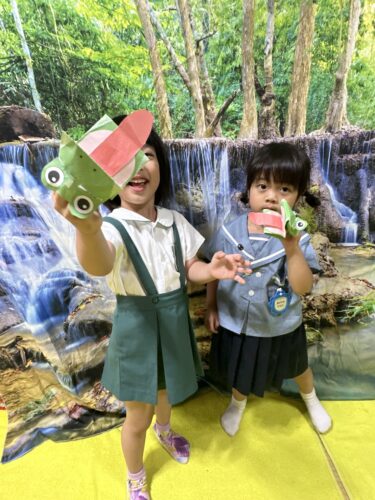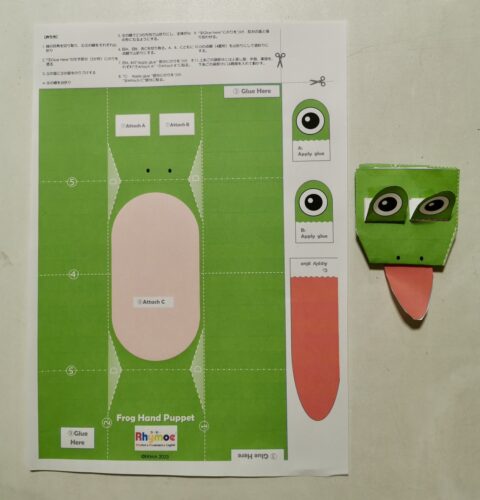 おうちで作ってきたカエルさんを使って、